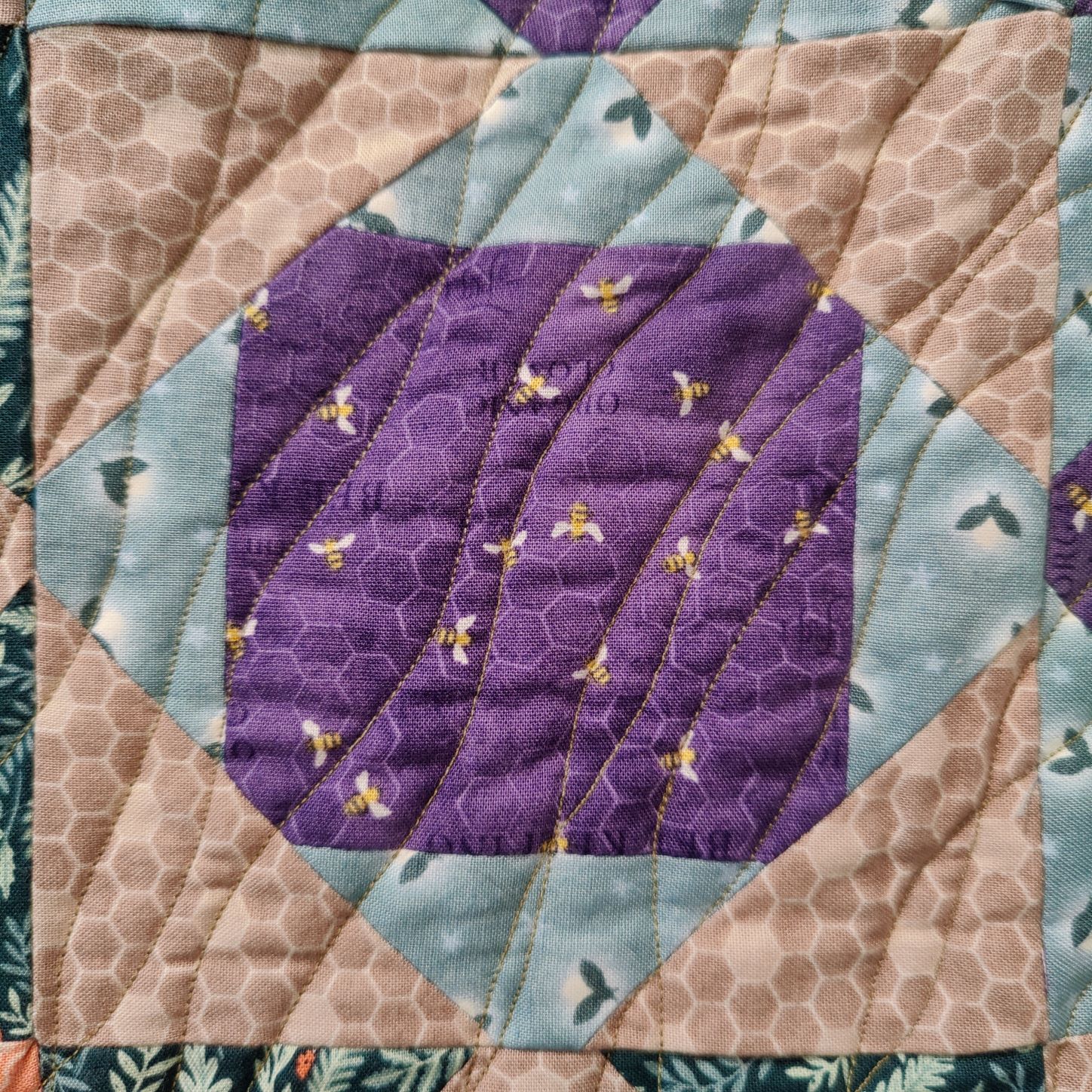 • Start in the middle, not the edge – by the time I reached the middle of my sandwich, everything had slipped around by a decent amount and was pulling at the basting. Some of the pulling could have been avoided if I started in the middle and worked my way out.